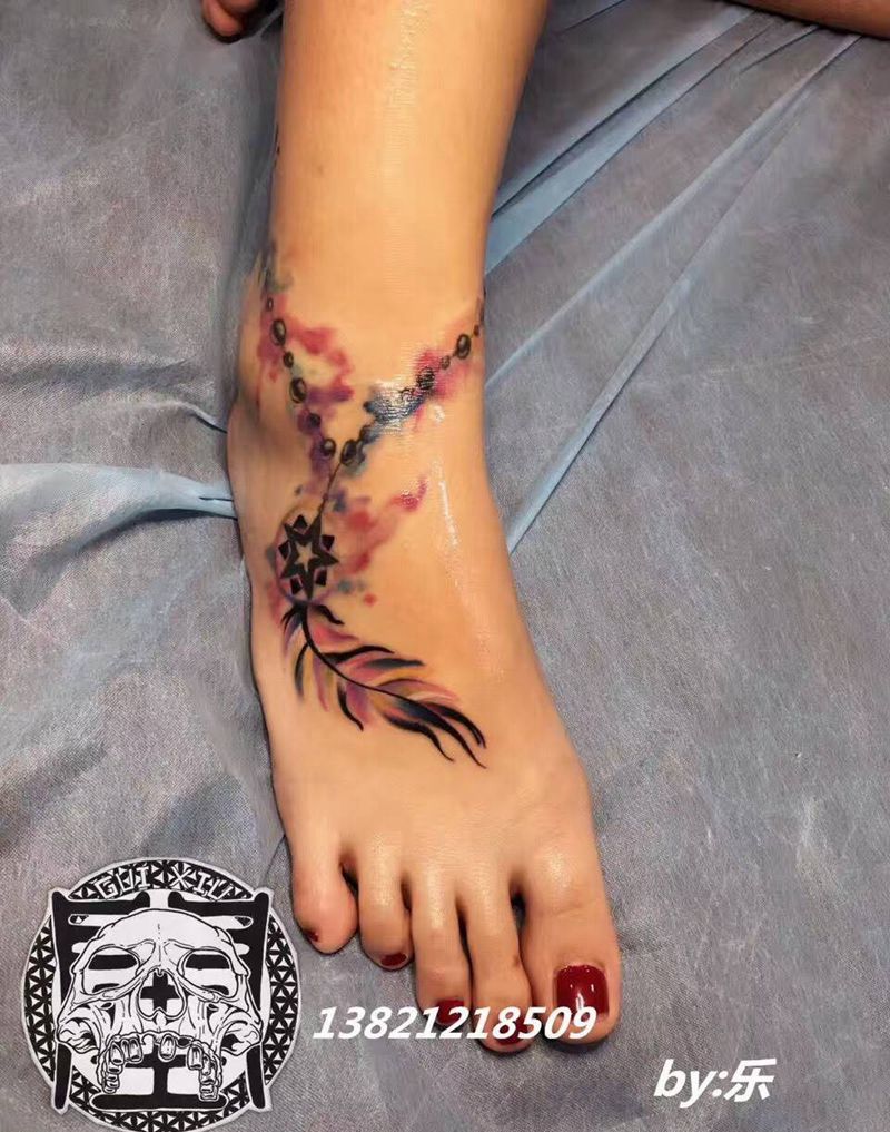 当前位置: 首页 >天津市纹身店-天津闺绣刺青纹身图案>修改添加羽毛脚链纹身图片_成品脚部腿部欧美清新静物原创习俗传统纹身图案