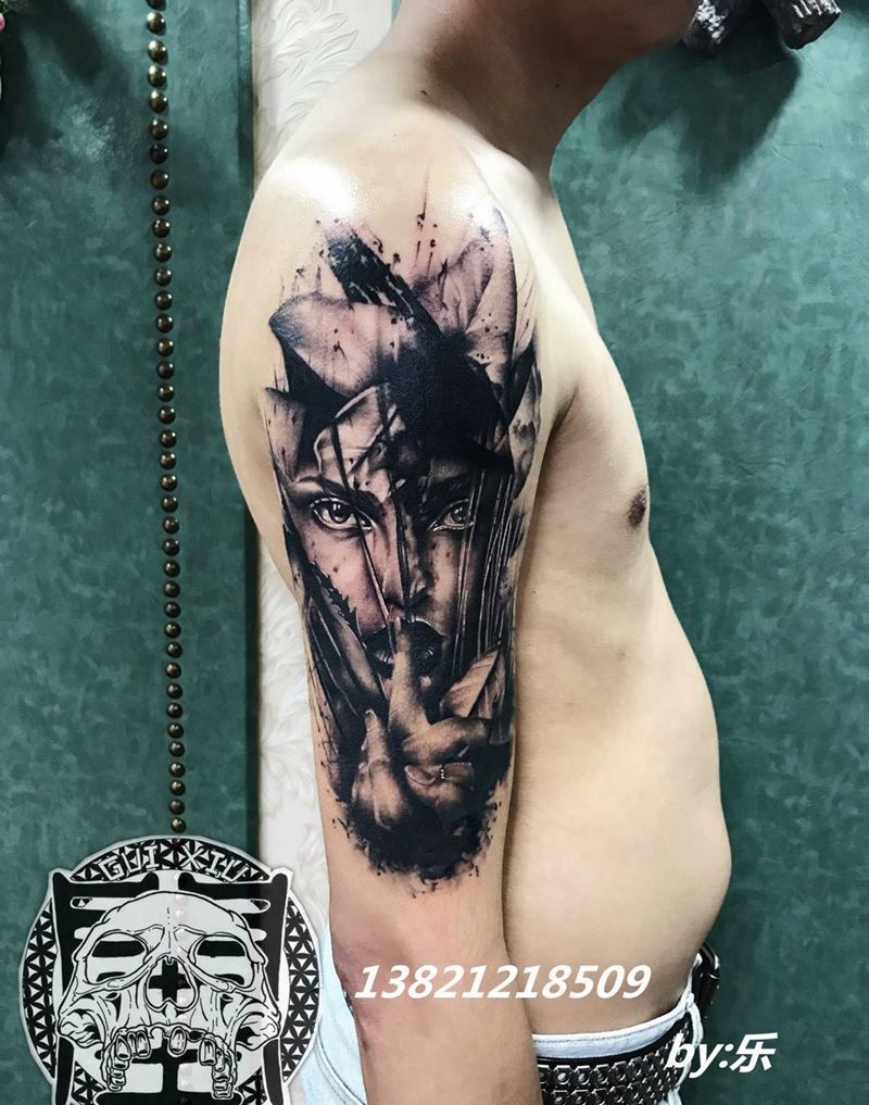 当前位置: 首页 >天津市纹身店-天津闺绣刺青纹身图案>欧美大妞遮盖纹身图片_成品肩部手臂手部欧美肖像清新几何人物纹身图案