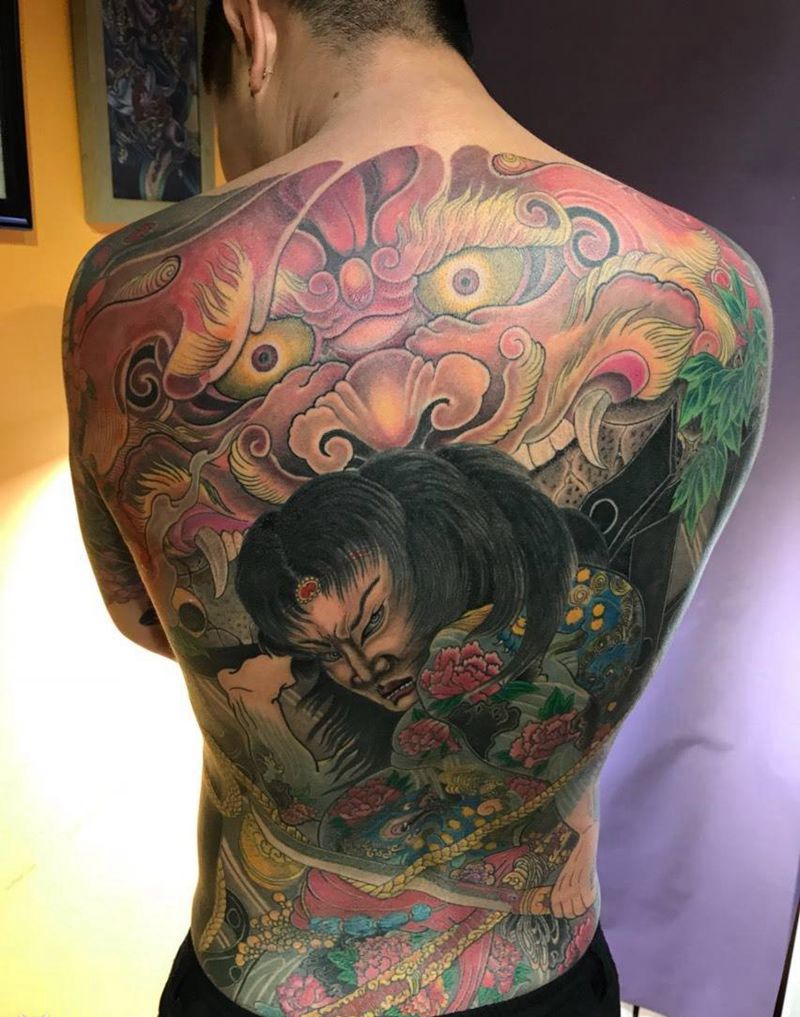 黑灰满背纹身图案