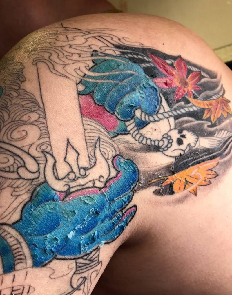 • 纹身吧推荐的披肩图腾半胛纹身图案作品展示