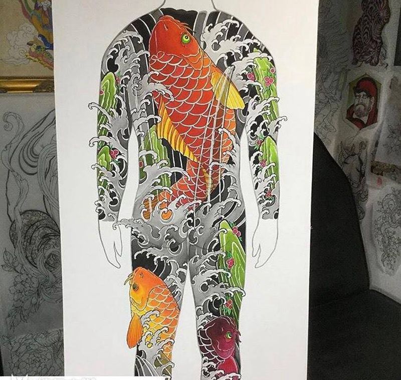 黑灰满背纹身图案