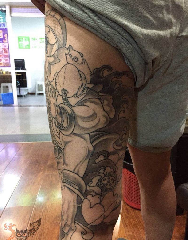 • T网红王老大花腿龙纹身图片_腿部新传统纹身图案