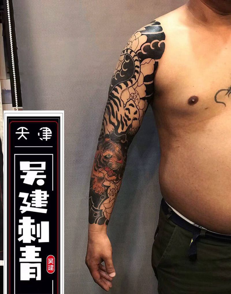 当前位置: 首页 >天津市纹身店-天津吴建刺青纹身图案>老虎花臂纹身图片_手臂老传统纹身图案