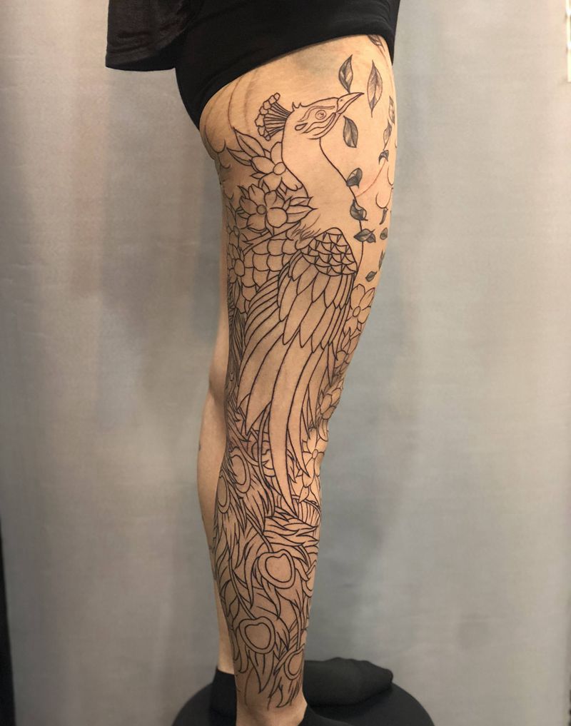 当前位置: 首页 >天津市纹身店-天津吴建刺青纹身图案>孔雀纹身图片_腿部老传统纹身图案