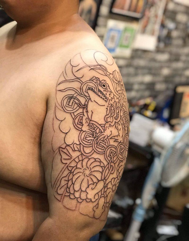 大臂金蟾割线纹身图片_手臂老传统金蟾纹身图案