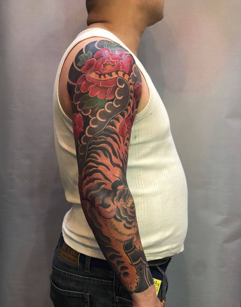 当前位置: 首页 >天津市纹身店-天津吴建刺青纹身图案>花臂虎完结纹身图片_手臂老传统纹身图案
