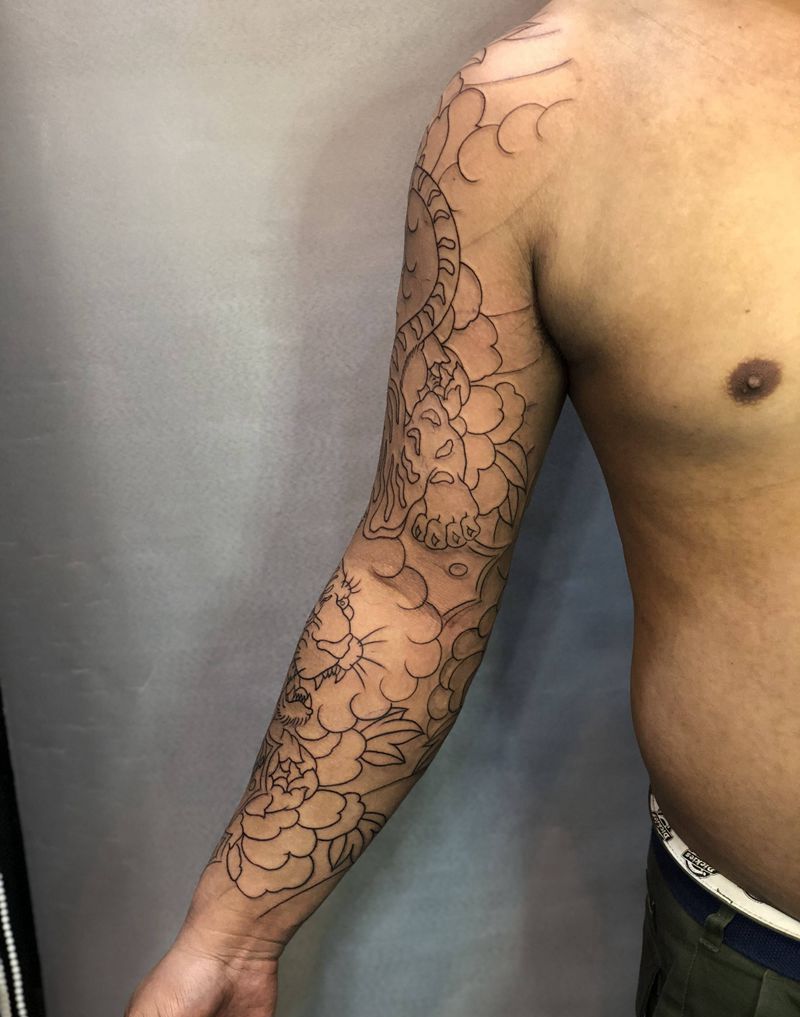 • H老虎花臂手稿图片 老虎个性纹身