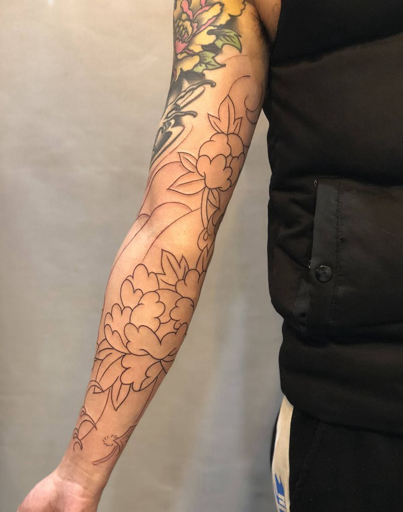 当前位置: 首页 >天津市纹身店-天津吴建刺青纹身图案>接花臂纹身图片_手臂老传统纹身图案