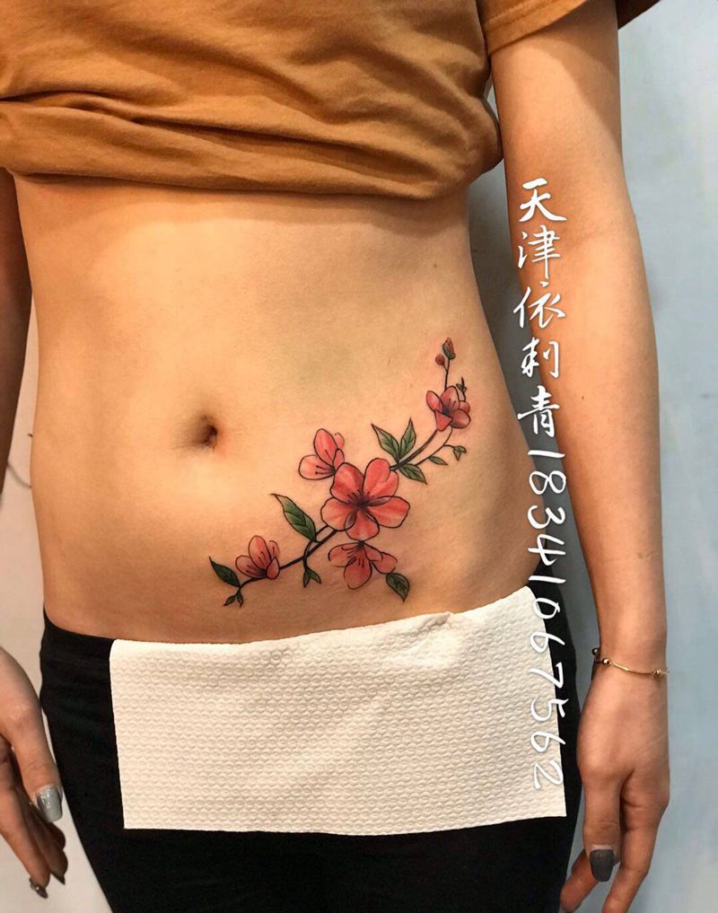 当前位置: 首页 >天津市纹身店-天津吴建刺青纹身图案>遮盖疤痕纹身图片_腰部腹部水彩花纹身图案