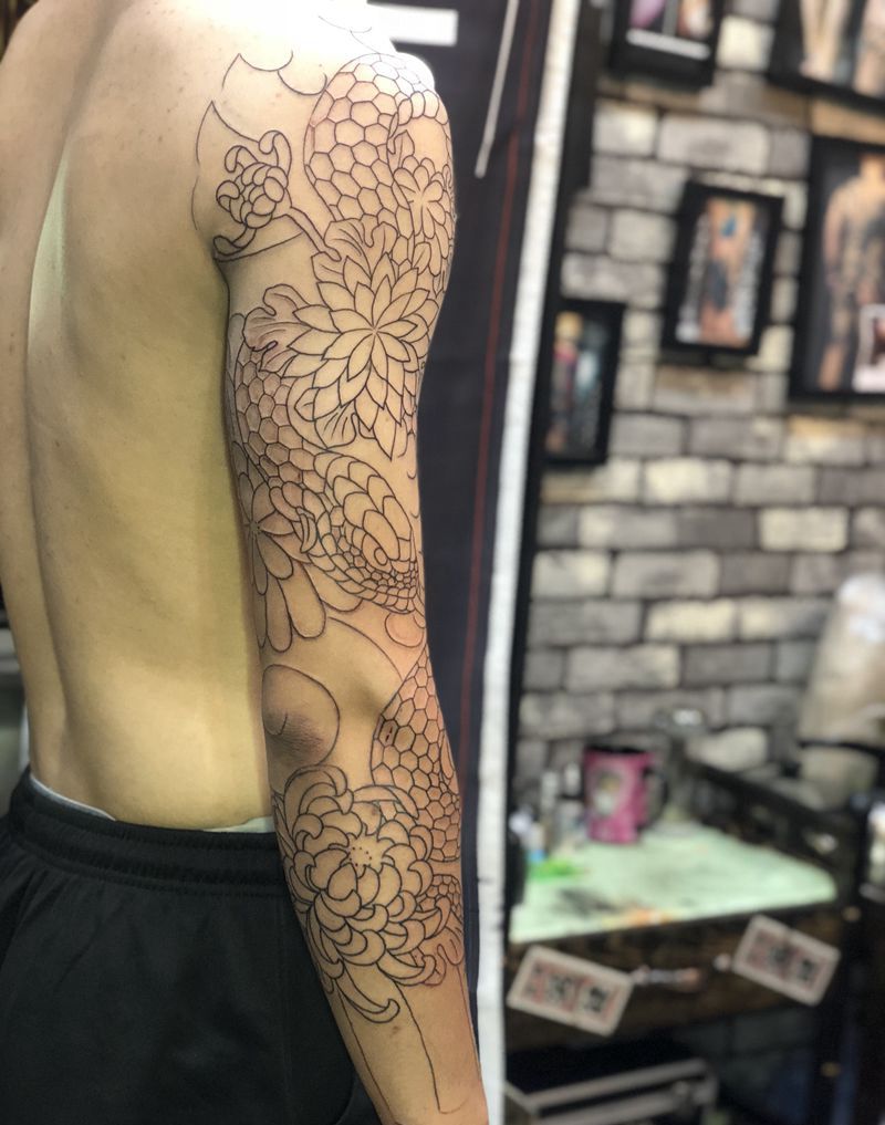 当前位置: 首页 >天津市纹身店-天津吴建刺青纹身图案>蟒戏菊花纹身图片_手臂老传统蟒纹身图案
