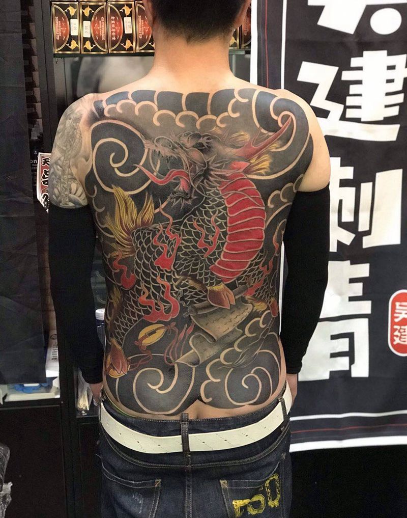 • T云龙九郎纹身图片_背部老传统云龙九郎纹身图案