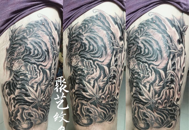 黑灰满背纹身图案