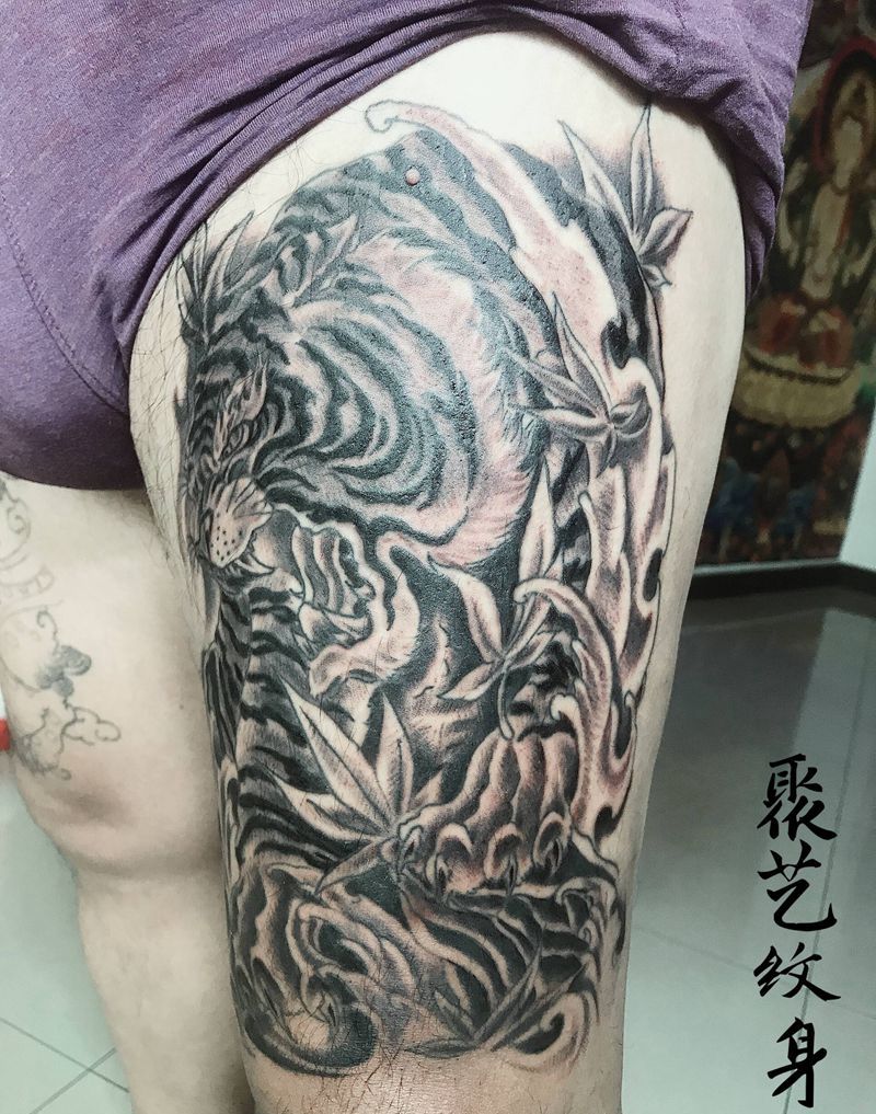 当前位置: 首页 >天津市纹身店-聚艺纹身纹身图案>大腿老虎纹身图片_腿部纹身图案