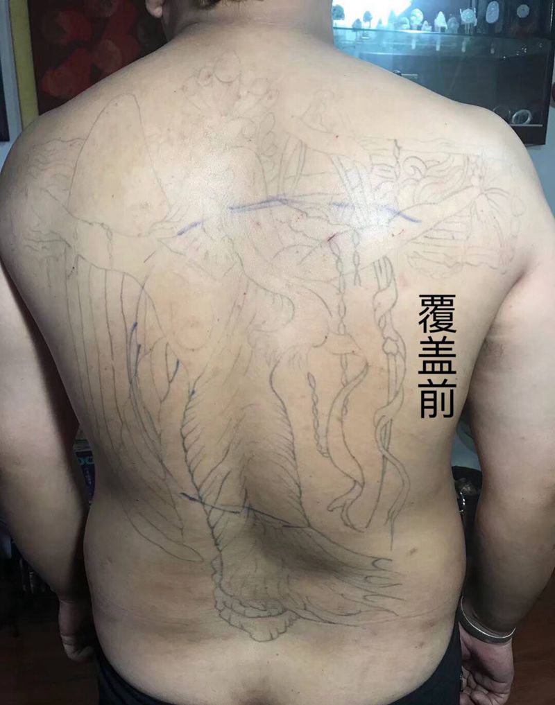 覆盖纹身唐狮纹身图片_背部纹身图案