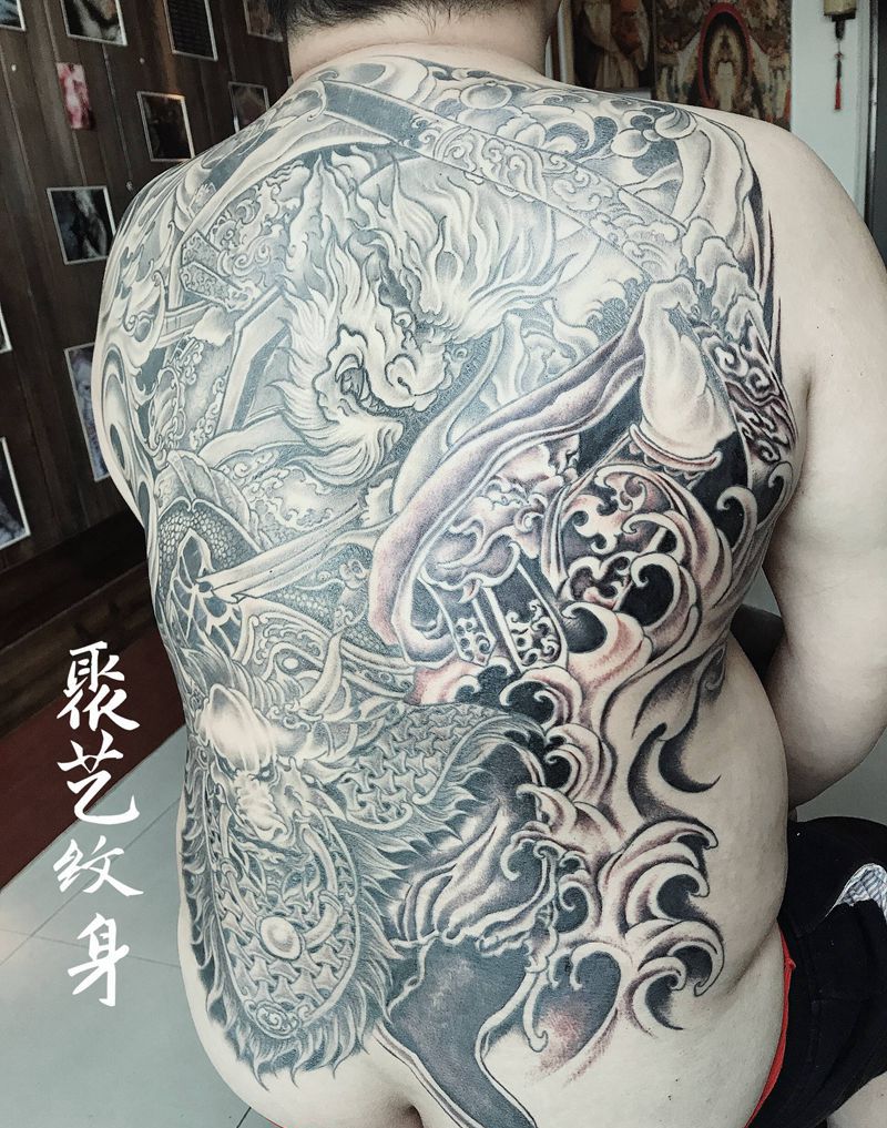 黑灰满背纹身图案