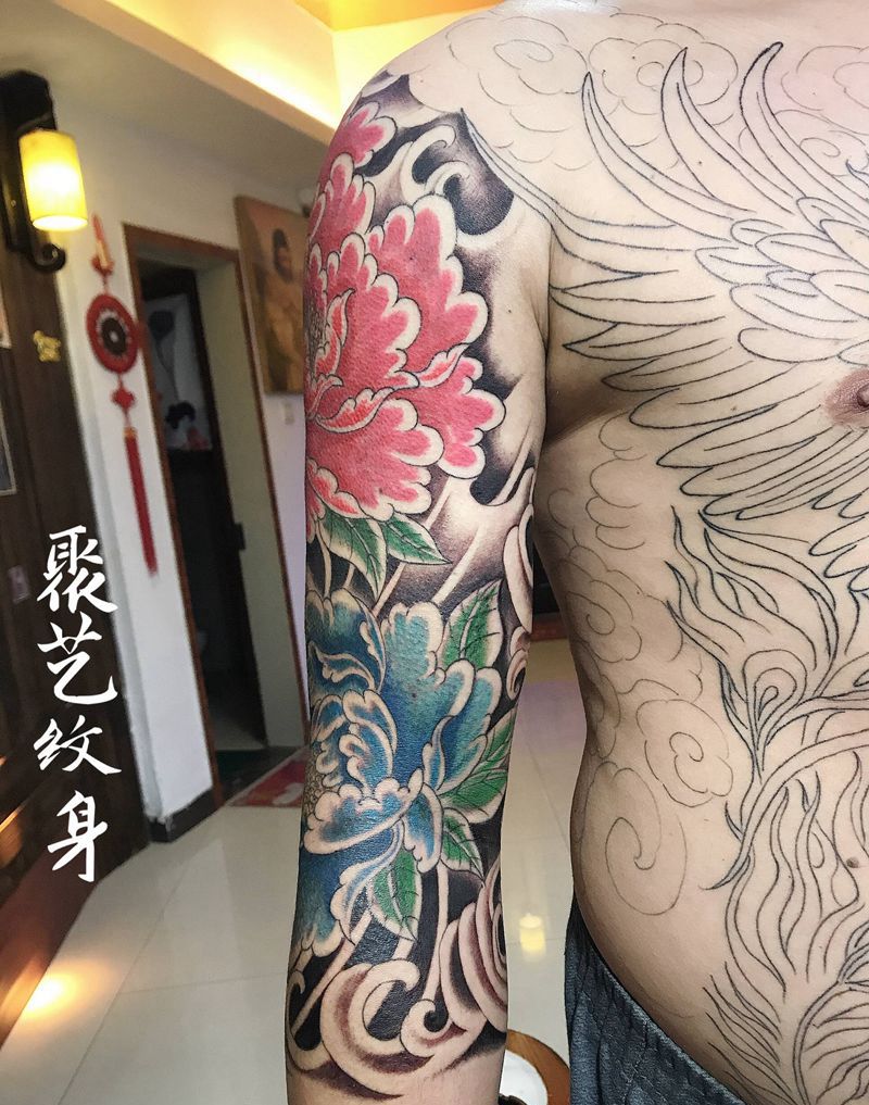 当前位置: 首页 >天津市纹身店-聚艺纹身纹身图案>花臂牡丹纹身图片_手臂纹身图案