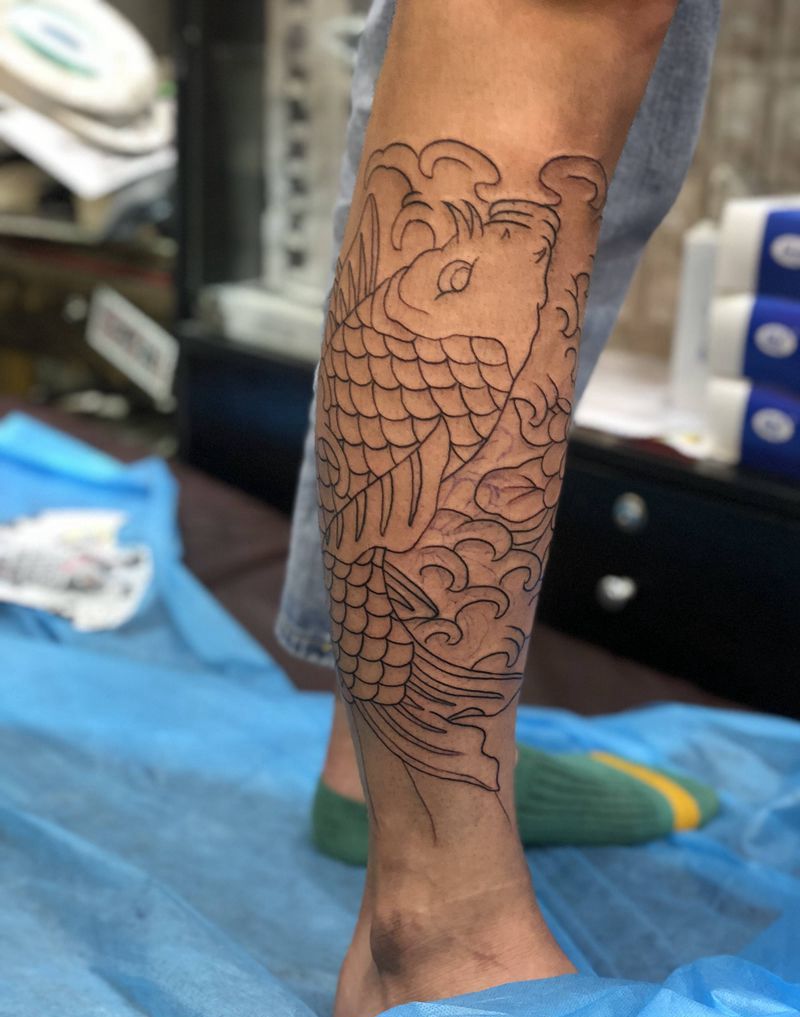 当前位置: 首页 >天津市纹身店-天津吴建刺青纹身图案>包小腿鱼线条纹身图片_腿部老传统鱼纹身图案