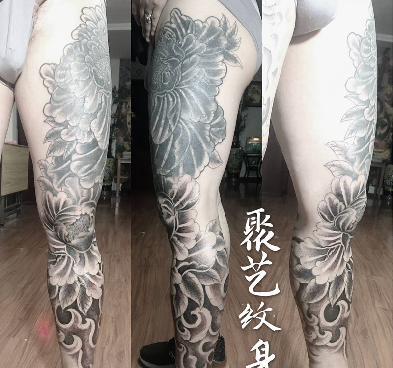 覆盖纹身 花腿牡丹纹身图片_腿部纹身图案