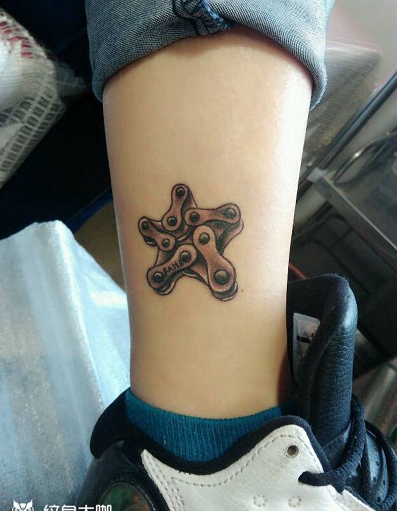 五星链条纹身图片_腿部欧美清新静物成品纹身图案