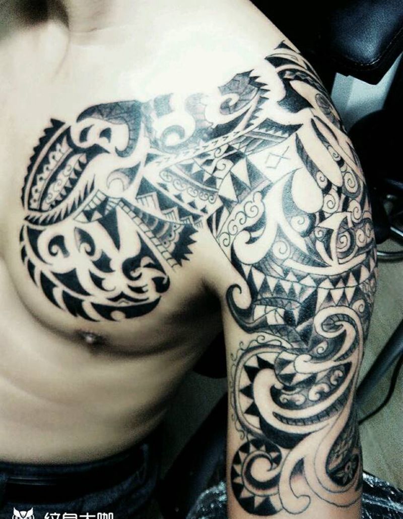 图腾半甲纹身图片_肩部胸部手臂欧美图腾宗教成品纹身图案