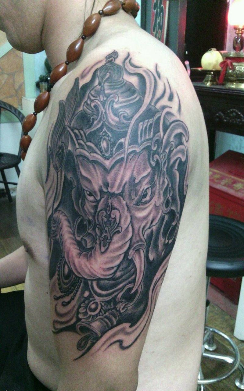 当前位置: 首页 >天津市纹身店-聚艺纹身纹身图案>象神纹身图片_手臂传统人物鬼神宗教成品纹身图案