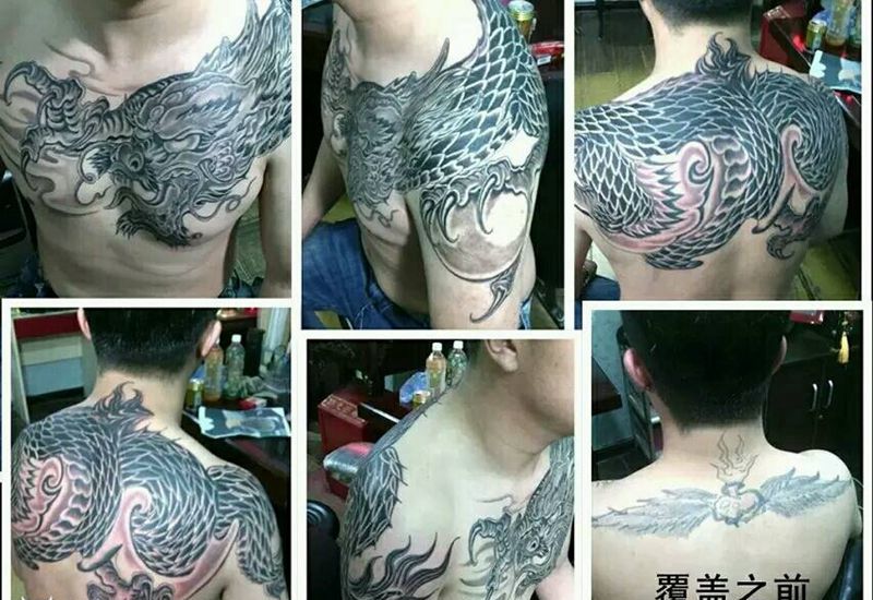 当前位置: 首页 >天津市纹身店-聚艺纹身纹身图案>过肩盘龙纹身图片_肩部胸部背部手臂传统动物宗教成品纹身图案