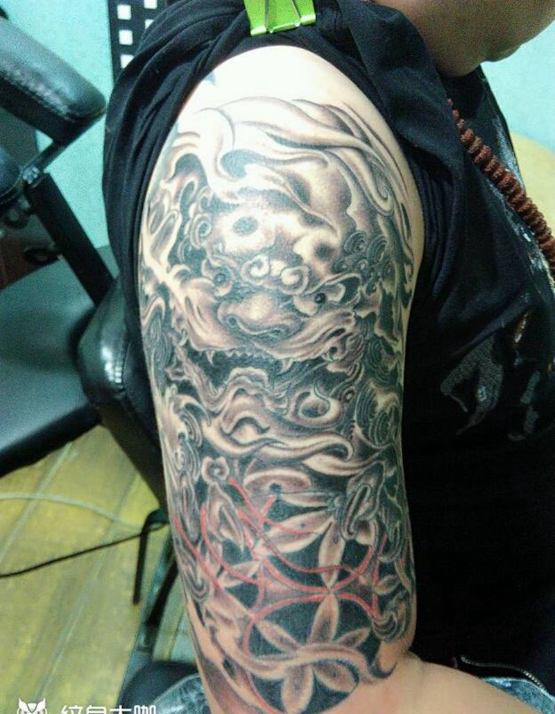 唐狮纹身图片_手臂传统动物鬼神宗教成品纹身图案