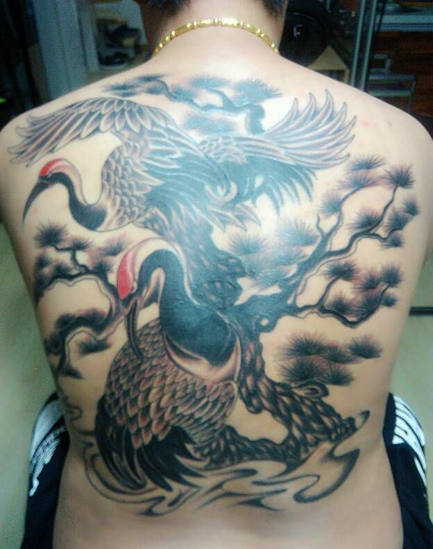 松鹤延年纹身图片_背部传统动物植物宗教成品纹身图案