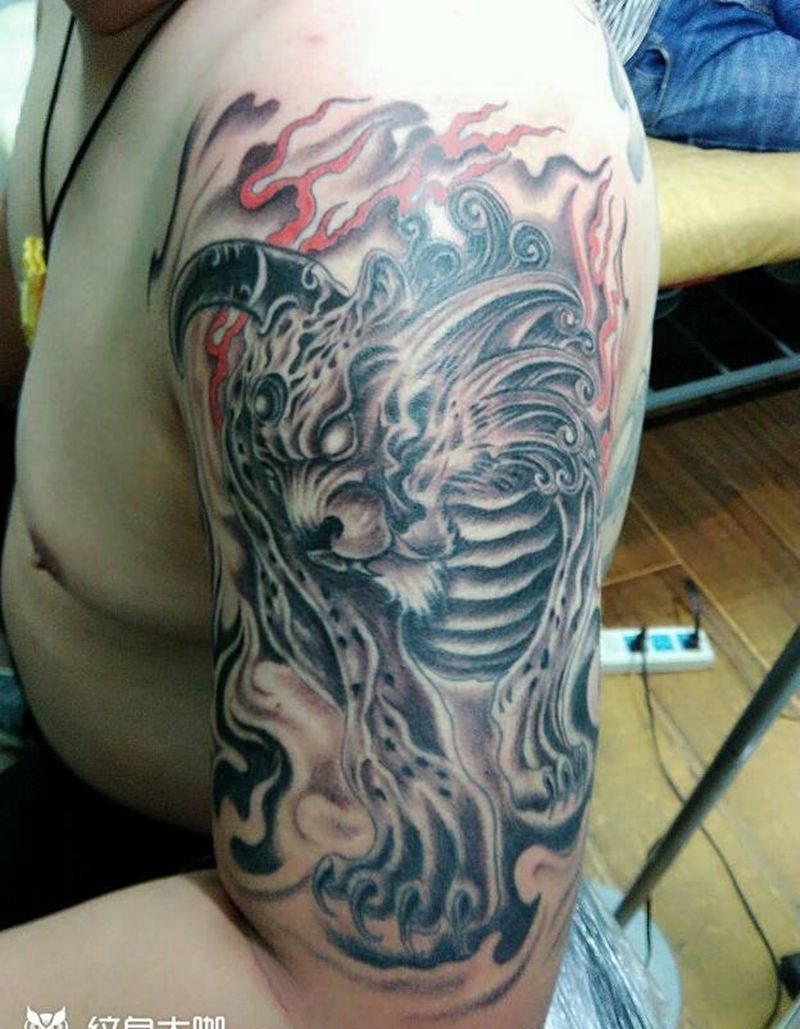 烈火貔貅纹身图片_手臂传统动物宗教成品纹身图案