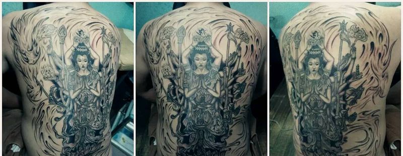 黑灰满背纹身图案