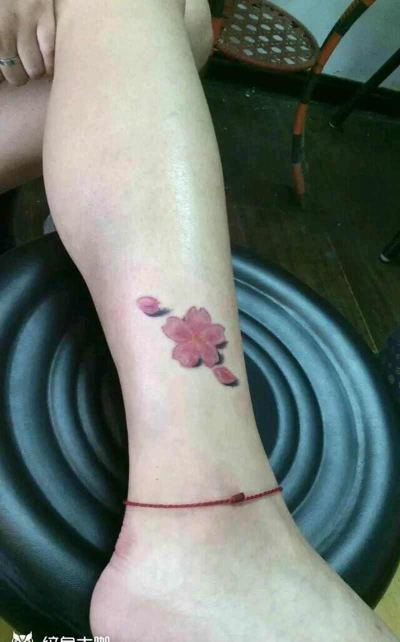 当前位置: 首页 >天津市纹身店-聚艺纹身纹身图案>樱花纹身图片_腿部清新植物成品纹身图案