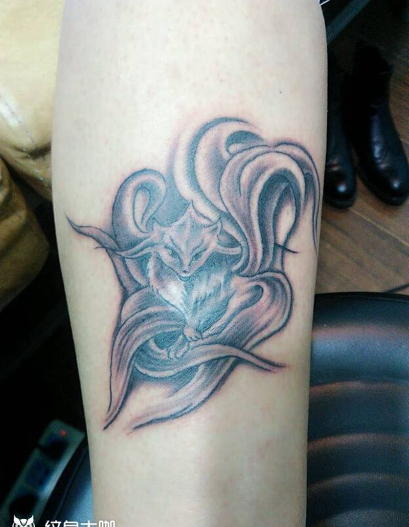当前位置: 首页 >天津市纹身店-聚艺纹身纹身图案>九尾狐纹身图片_腿部传统动物宗教成品纹身图案