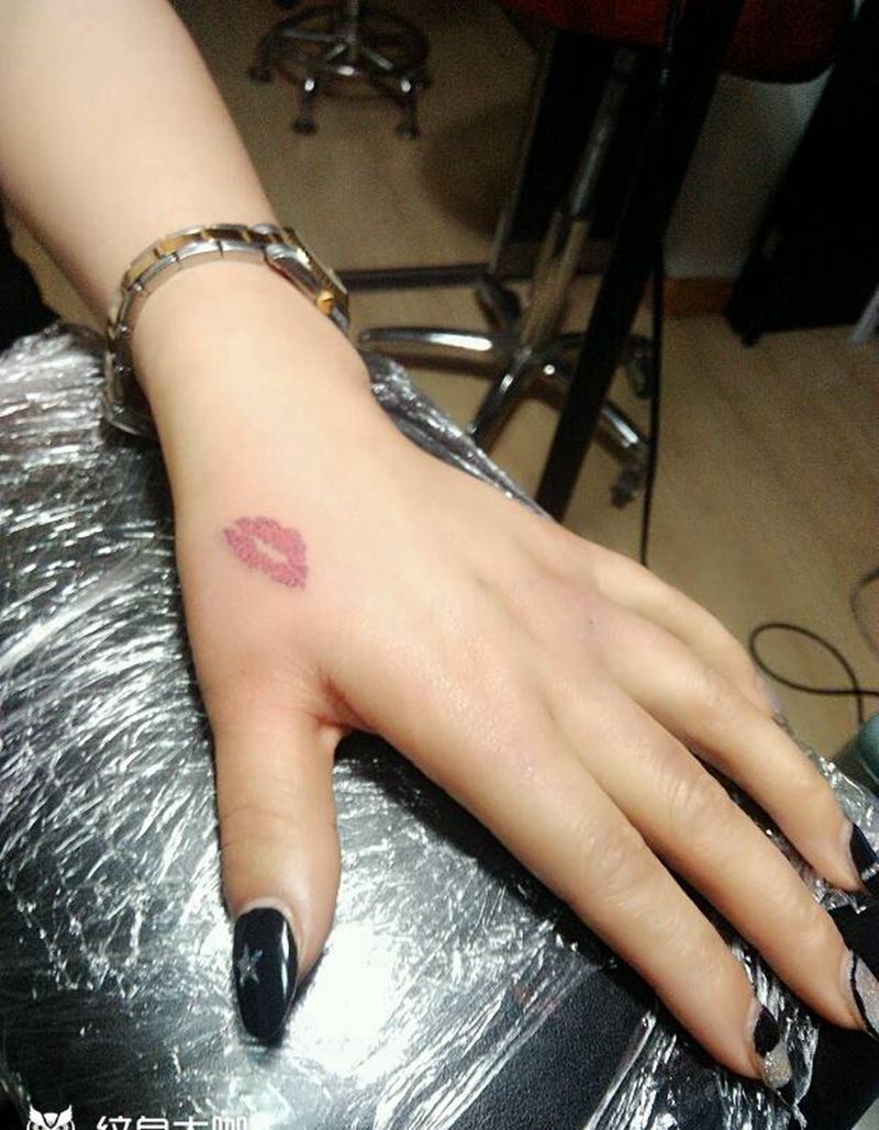 小清新 红唇纹身图片_手部清新成品纹身图案
