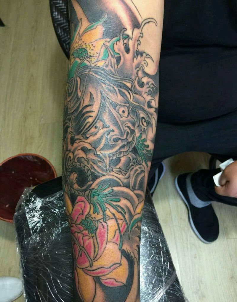 当前位置: 首页 >天津市纹身店-聚艺纹身纹身图案>般若花臂纹身图片_手臂传统鬼神成品纹身图案