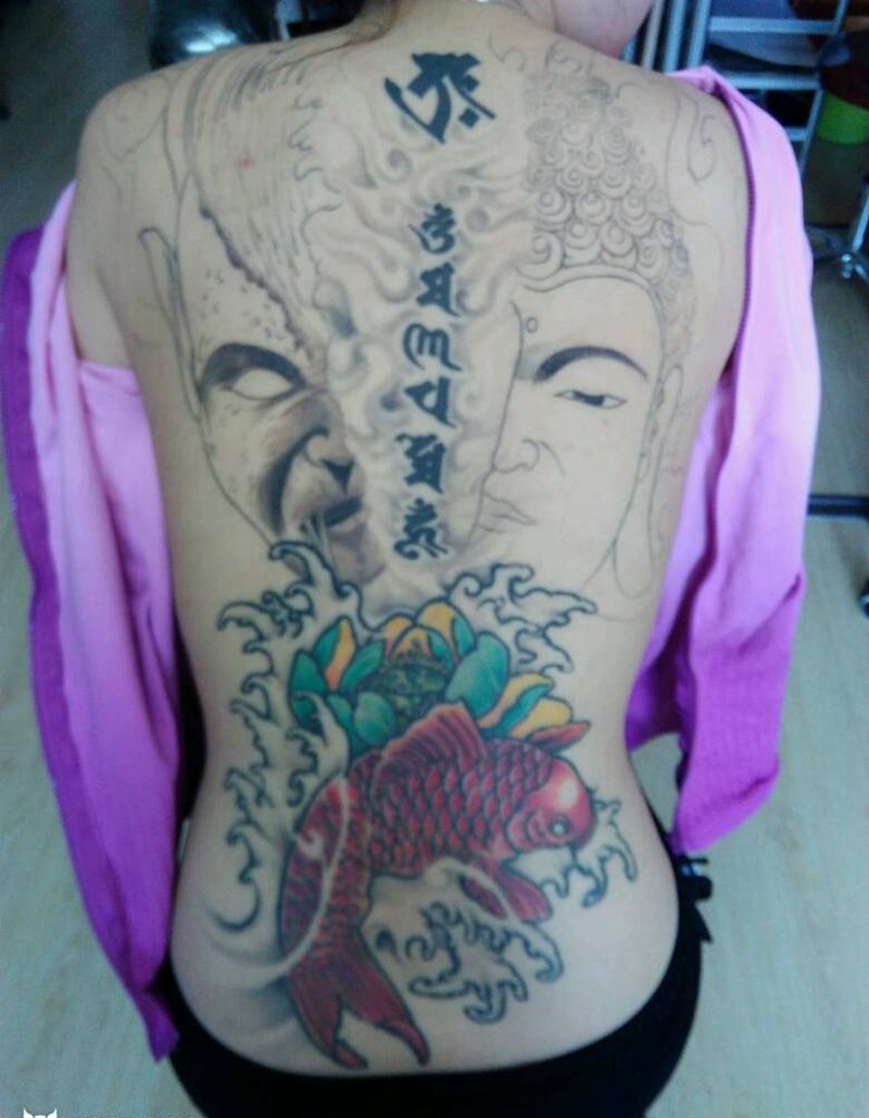 黑灰满背纹身图案