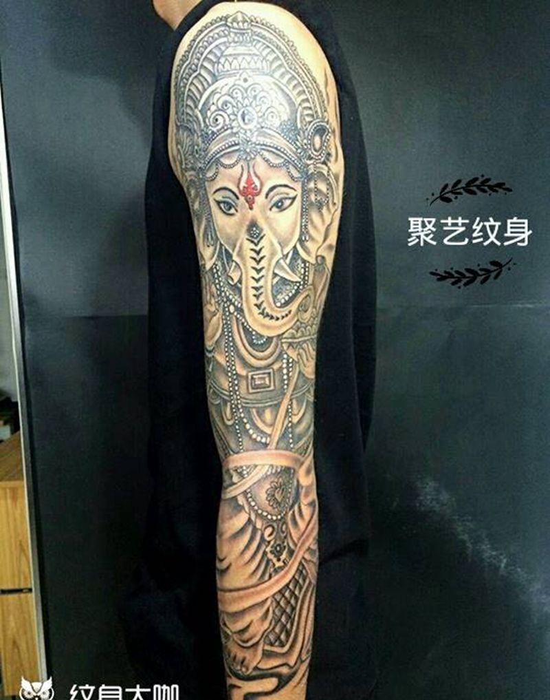 当前位置: 首页 >天津市纹身店-聚艺纹身纹身图案>象神花臂纹身图片_