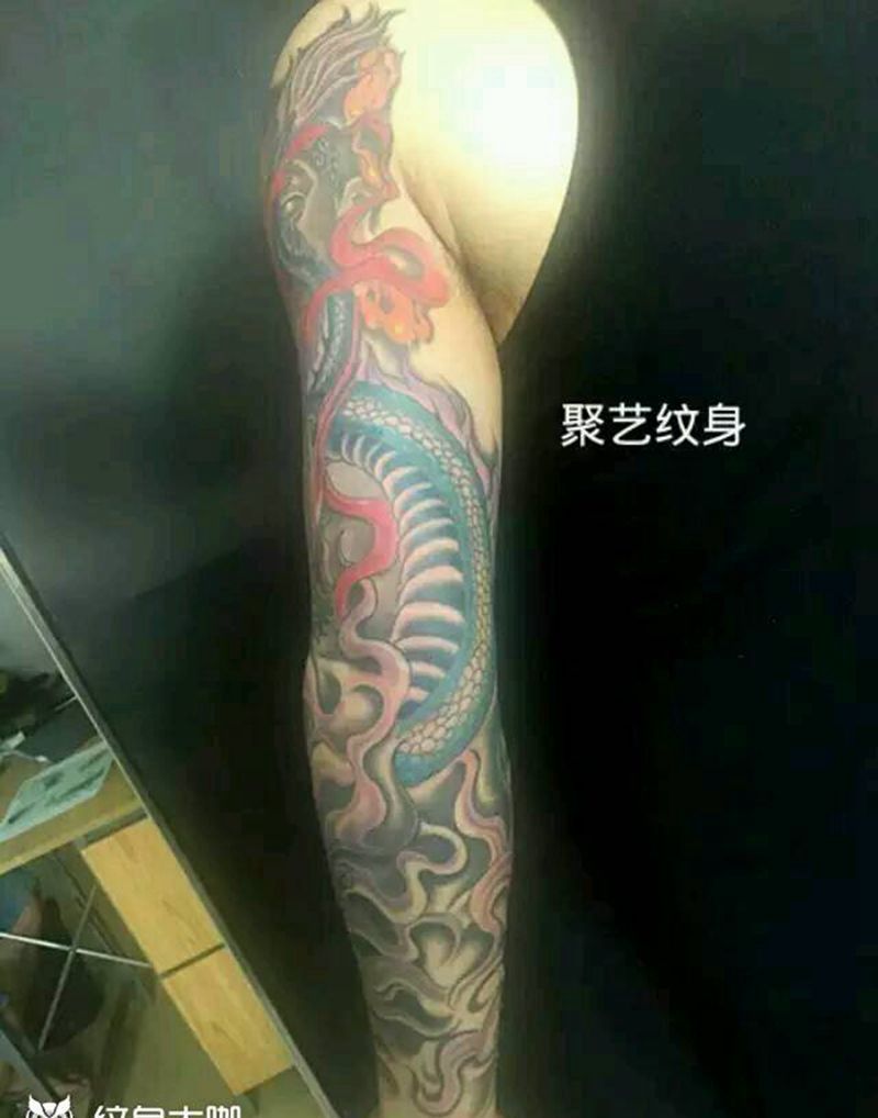 • T网红王老大花腿龙纹身图片_腿部新传统纹身图案