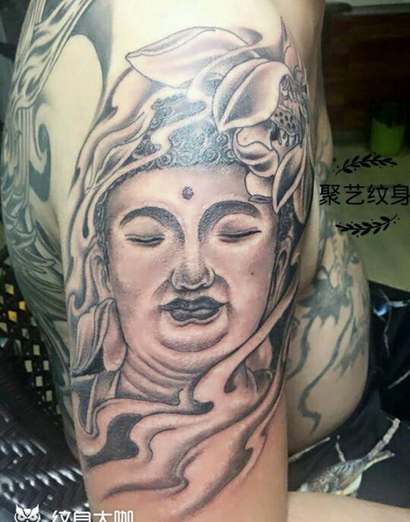 当前位置: 首页 >天津市纹身店-聚艺纹身纹身图案>莲花佛头纹身图片_