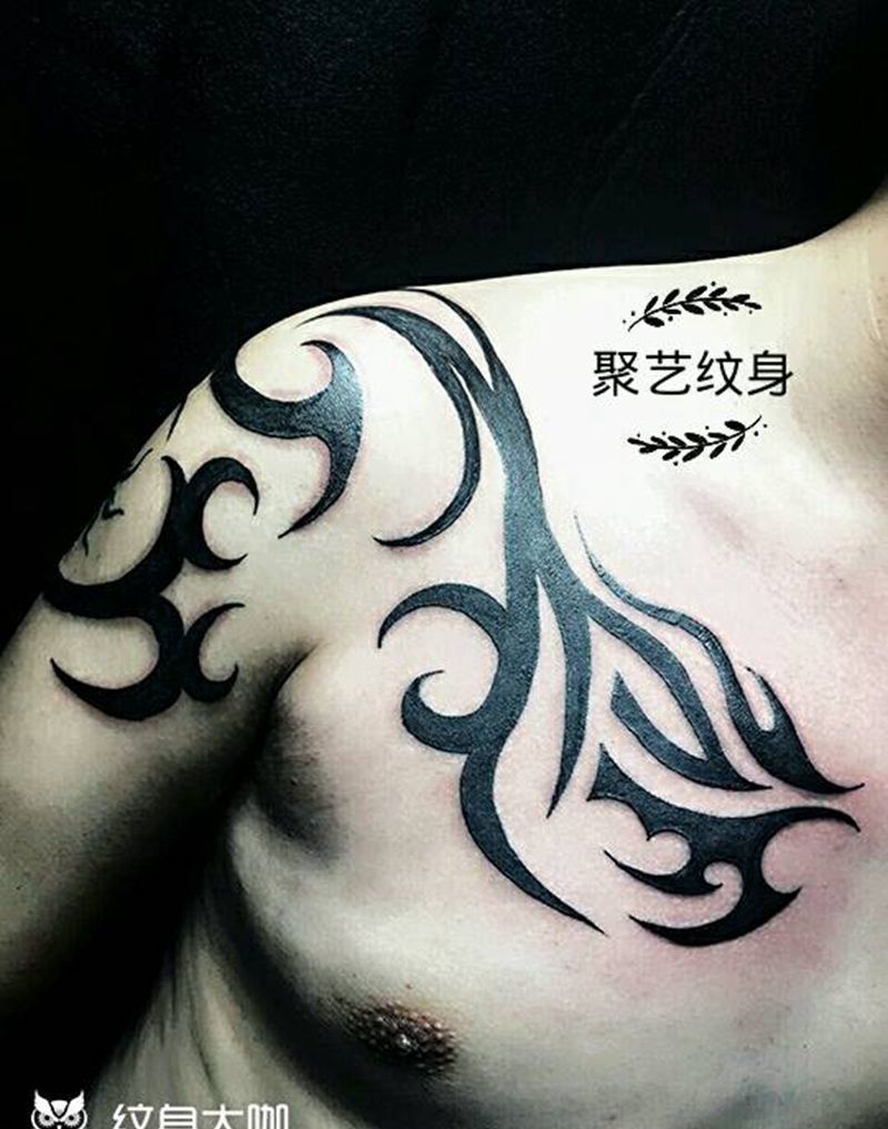 过肩图腾纹身图片_肩部胸部欧美成品纹身图案