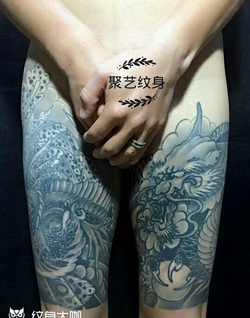 当前位置: 首页 >天津市纹身店-聚艺纹身纹身图案>包腿龙凤纹身图片_腰部臀部腿部传统动物宗教成品纹身图案