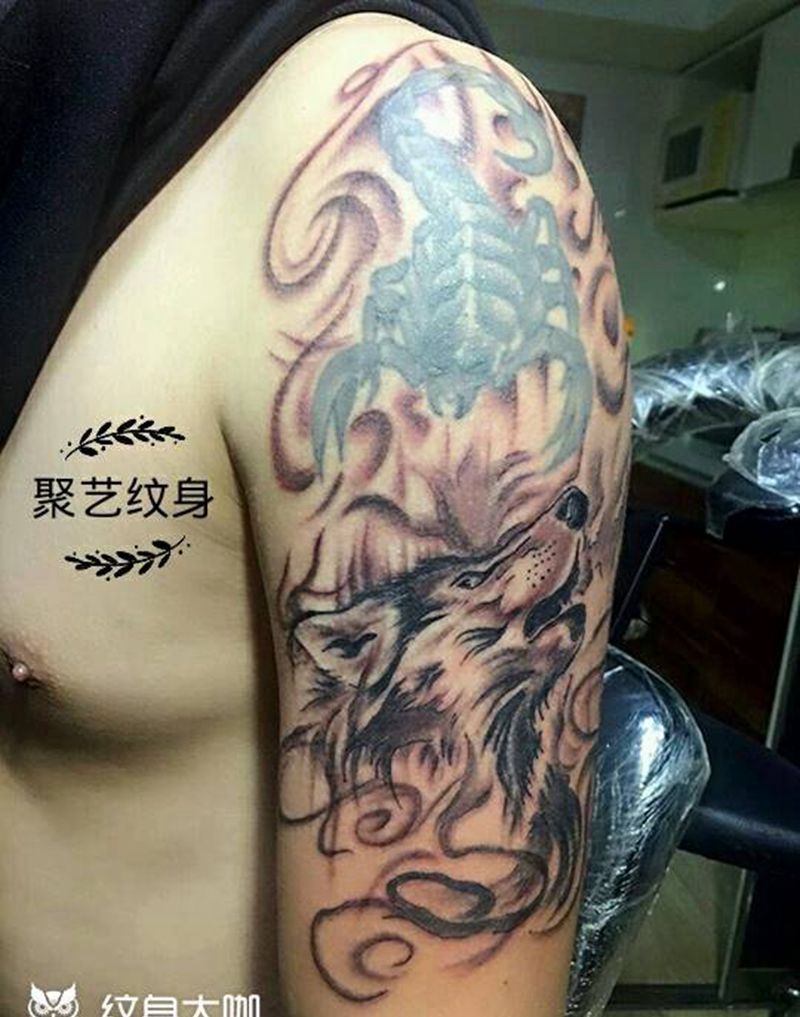 当前位置: 首页 >天津市纹身店-聚艺纹身纹身图案>水墨狼头纹身图片_