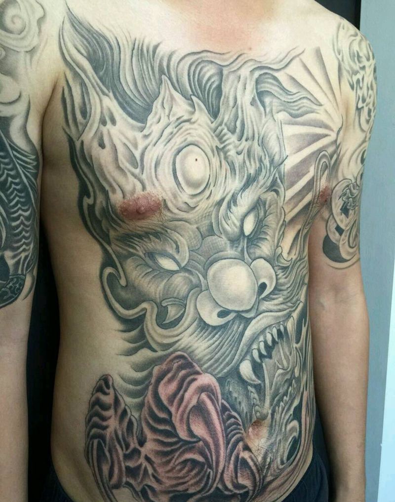 正脸龙纹身图片_胸部腹部传统动物宗教成品纹身图案
