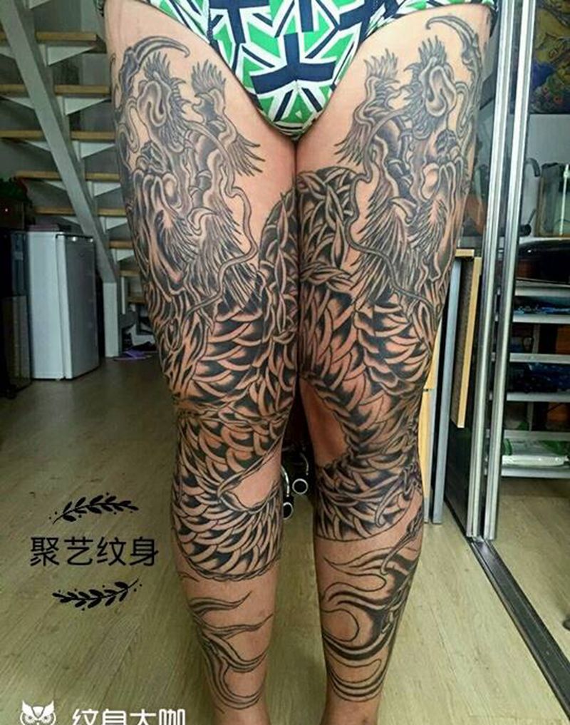 • T网红王老大花腿龙纹身图片_腿部新传统纹身图案