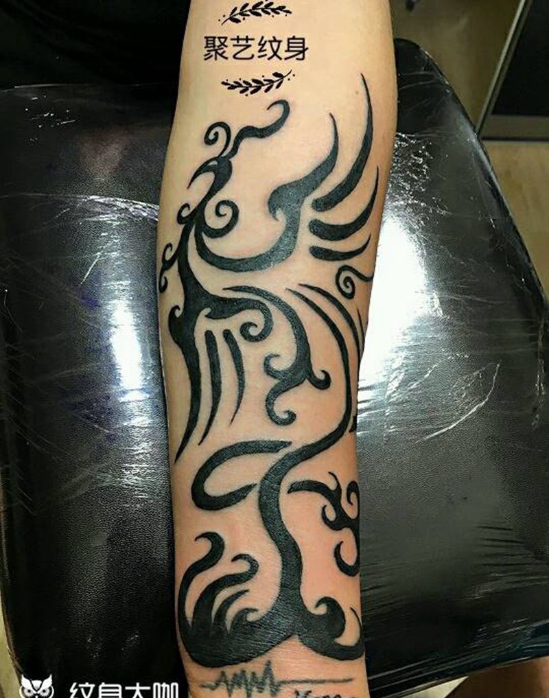 当前位置: 首页 >天津市纹身店-聚艺纹身纹身图案>图腾凤凰纹身图片_