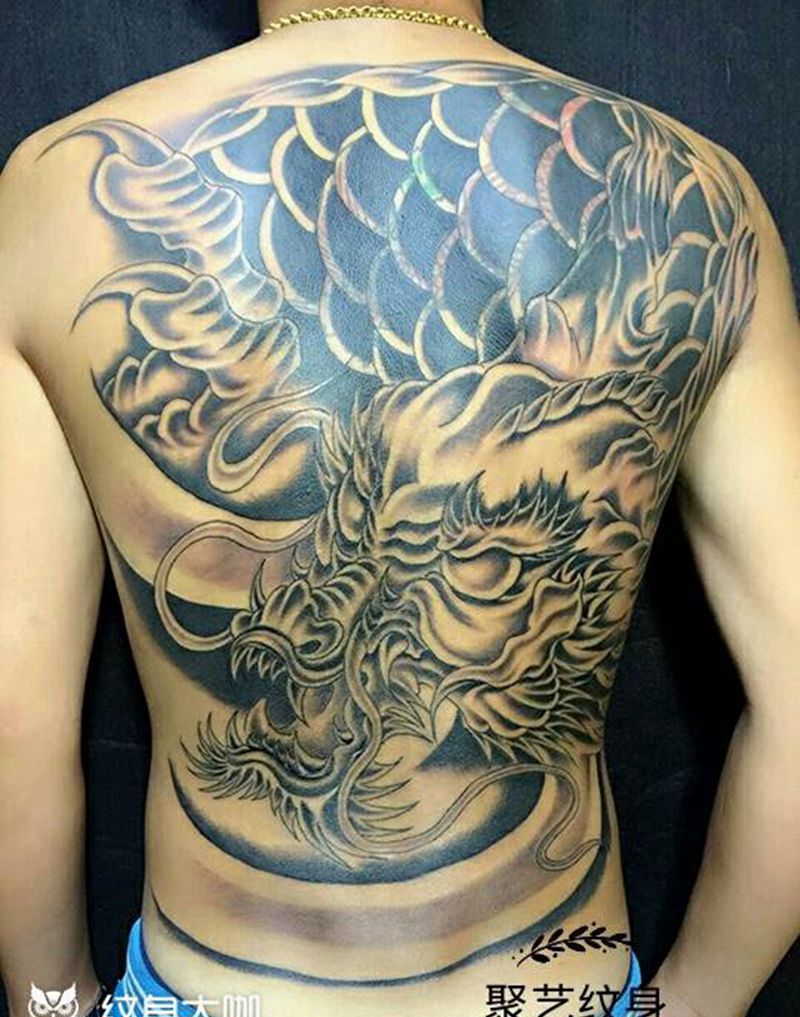 • T云龙九郎纹身图片_背部老传统云龙九郎纹身图案