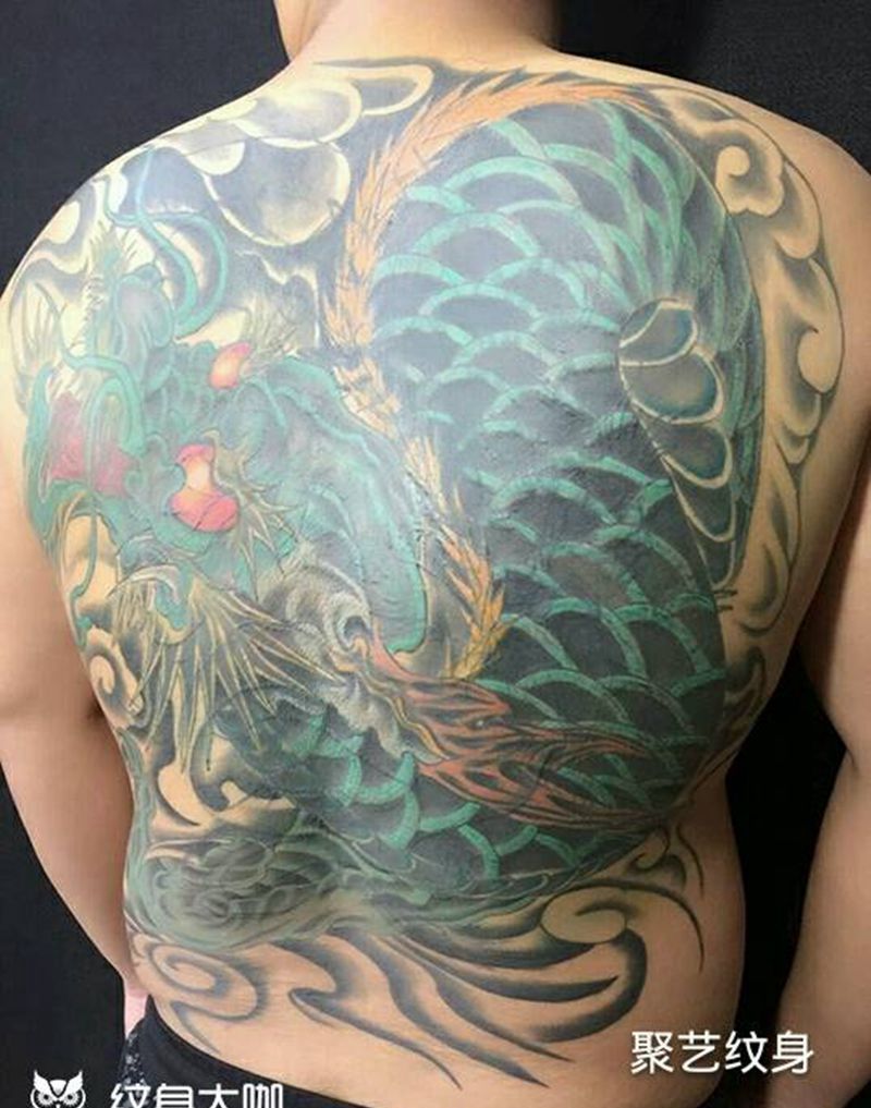 当前位置: 首页 >天津市纹身店-聚艺纹身纹身图案>覆盖纹身云龙纹身图片_背部传统动物成品纹身图案