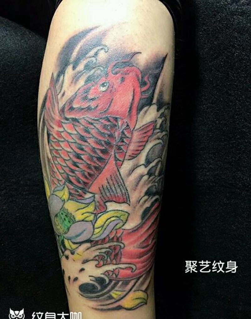 当前位置: 首页 >天津市纹身店-聚艺纹身纹身图案>小腿招财鲤鱼纹身图片_腿部传统动物成品纹身图案