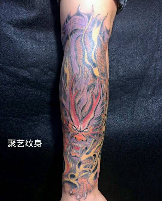 • T网红王老大花腿龙纹身图片_腿部新传统纹身图案