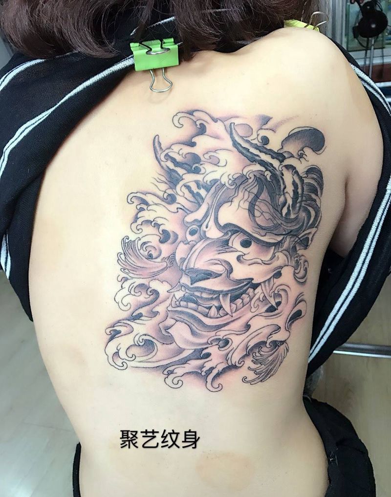 当前位置: 首页 >天津市纹身店-聚艺纹身纹身图案>大般若纹身图片_手稿背部传统鬼神纹身图案