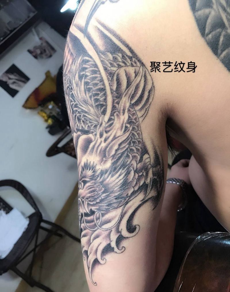 大臂祥龙纹身图片_成品手臂传统动物纹身图案